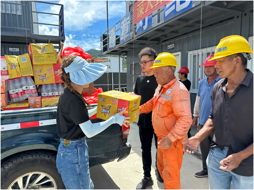 此次送清涼活動為一線施工人員采購發放了飲料、綠豆、藿香正氣水、毛巾等多種防暑降溫用品。林總叮囑一線施工人員做好個人防護,注意防暑降溫,堅持安全有序地推進各項工作;要求項目部要加大職工夏季勞動保護工作力度,科學組織施工,做好人員輪換,避開高溫時段,切實維護廣大一線施工人員的安全健康權益。