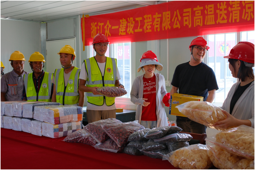 入夏以來,持續(xù)的高溫悶熱天氣給一線施工人員帶來了嚴(yán)峻的“烤”驗(yàn)。為切實(shí)做好夏季防暑降溫工作,公司負(fù)責(zé)人攜各部門員工于7月30日至31日來到各項(xiàng)目部工地開展“高溫送清涼”慰問活動(dòng),為一線施工人員送上了飲料、銀耳、毛巾等多種防暑降溫用品。